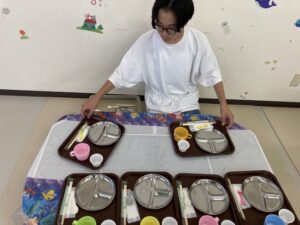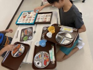 多数決ゲームと配膳です。
