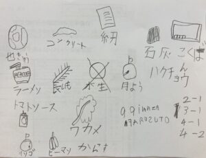 今日は少人数だったので、多数決ゲームでは、「丸いものといえば?」「みんなが嫌いな野菜と言えば?」など、皆で一致しそうなものをそれぞれが一つ選んでメモをし、全員同じものが書けるまで行いました。