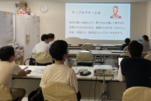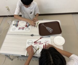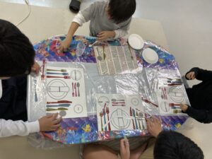 2025/10/16 テーブルマナー🍽とリズムクイズ♫です。 テーブルマナーでは、カトラリーの配置で前回間違えていた子も覚えており、正解していました。 リズムクイズでは、動画で簡単なリズムを言葉に置き換える練習をし、実際に手拍子だけで何と言っているか当てる3択クイズをしました。 促音や長音の感覚を掴むのが難しかったようです。