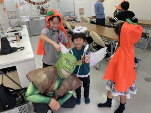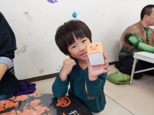 2025/10/26 ハロウィンパーティー🎃👻です。 「ハッピーハロウィン!」という挨拶で入ってきてくれました笑 普段は、毎日就労準備の訓練や学習をしているので、イベントの日は皆張り切っています! ジャコランタンのカップを工作し、「トリックオアトリート」と言ってお菓子をもらって回り、ゲームなどをして楽しく過ごしました!