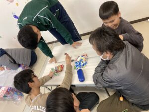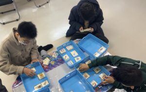 ピッキングでは、リストを見ながら商品を速く正確にピックアップしていく練習をしました。「いってきま~す」「ただいま~」と中高生がおままごとのように楽しんでいる姿が微笑ましく、皆楽しんで行っていました笑