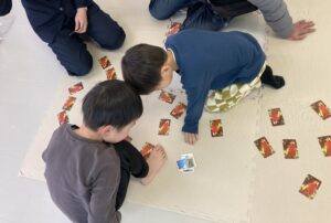 2026/01/22 IMG_0500 「著作物の公開方法」と「脳トレクイズ」です。 著作権法について、フリー素材などネット上の画像を使う際の注意点について考えました。他の人の著作物を利用するときには利用条件などをしっかり読み、自分が公開するときにも注意が必要だということを学びました。 余暇時間トランプで遊んでいる1年生が、リーチになって「UNO!」と叫んだので、「UNOじゃなくてトランプやで!」と言うと「トランプ~!」と叫んでいました笑 そこは「リーチ!!」と教えるべきでした・・・笑