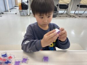 2026/03/02 「物語を作ろう」とバランスメイズです。 物語を作ろうでは、物語を構成する要素(キャラクター、舞台、ストーリー)について考え、オズの魔法使いを例に解説し、ワードに自作の物語を作っていきました。 バランスメイズは玉を溝に沿ってゴールへ導く、バランス感覚を鍛える立体迷路のような知育玩具で、皆の集中力が伺えました笑