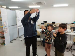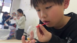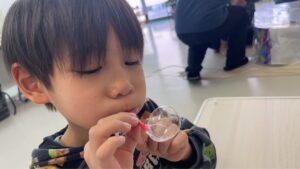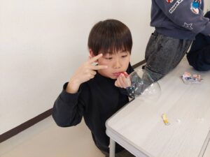 2026/03/20 /wp-content/uploads/795674512.202555.mp4 /wp-content/uploads/795676788.288327.mp4 ボードゲームとポリバルーンです。 ボードゲームではブロックス、ぽんじゃんなど、普段あまりしない複数人で遊ぶゲームで、みんなで遊ぶ楽しさを味わうことができました。 ポリバルーンは去年も盛り上がりましたが、細く長い息を入れるというコツを体験から覚えていきました。 今年はバルーンの中に水を入れて「つかめる水」にも挑戦しました!
