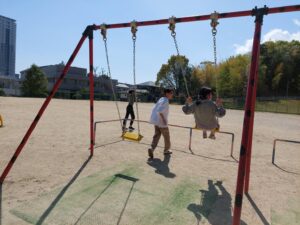 2026/04/11 公園遊びと図書館です。 公園では暑い中走り回り、たくさん運動ができました。 いつも他の曜日に来るお友達が図書館へ行ってみたいと来てくれ、初めて会う子に自己紹介をしました。 公園で盛り上がりすぎて、図書館の滞在時間は短くなってしまいましたが、久しぶりの良いお天気だったので、皆満足そうでした!