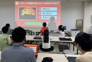 ハロウィンの由来やキャラクター、ジャコランタンの伝説などを知り、ハロウィンにまつわるクイズをしました。