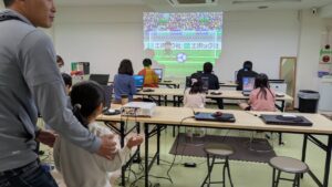 2025/11/07 「働くチカラをつけよう」とエキサイトサッカーです。 「働くチカラをつけよう」では、面接での受け答えやお辞儀の仕方、座り方など、第一印象を整える方法を学びました。 エキサイトサッカーでは、画面に向かって足を上げボールを蹴り上げます。少しコツが要りますが、初めての子も楽しくできました!