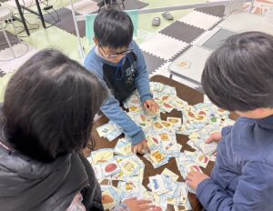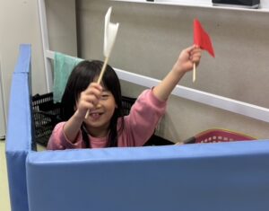 「せーの」で同時に言葉を言うことがとても難しく、人の言葉を聞いてから言ったり、言うべき単語が途中で変わったりとむちゃくちゃでした笑 初めてのプログラムで難しいという子がたくさんいましたが、慣れるとできるようになります。