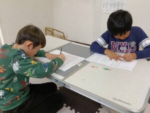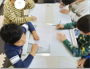 書写では「はばたく」のロゴマークの由来についての文章をなぞりましたが、急いで書いて文字が二重になっている子については、おかわりプリントもしてもらいました笑