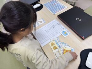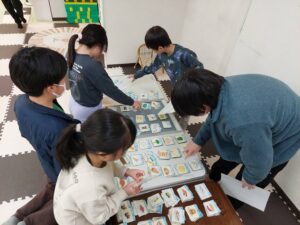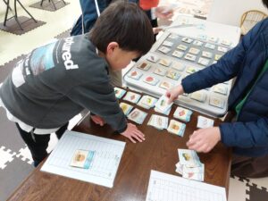 2026/03/05 フードサービス業と慣用句です。 「フードサービス業」ではホールとキッチンの業務内容を知り、調理や提供、接客などの他、安全管理や衛生管理などにも気を配らないといけないことを知り、ハンバーガー屋さんで実践しました。 同じ注文でも配置が違ったり、挟む順番が違ったりと、油断をすると別の物ができてしまうので「速く正確に」を念頭に頑張りました。 キッチン担当が「味見はなし?」と聞くので「なし!」と言いました(笑) 慣用句クイズでは「らちがあかない」を「ドアがあかない」など、知らない慣用句は上手に作っていました・・・(笑)
