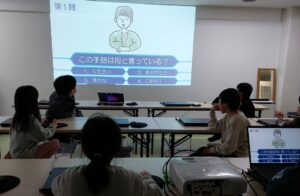 前回の手話では、自分の名前を指文字で表し自己紹介の練習をしました。豊中教室は、再度復習し、摂津教室は「ビリーブ」の歌に挑戦しました。皆がよく知っている歌なので、口ずさみながら頑張りました!