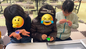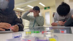 2026/03/24 反射トレーニングとバランスメイズです。 反射トレーニングでは、たくさんの情報がある中で、聞かれたことに即座に答える練習をしました。「背景の色」「色の名前が書かれた文字」「文字の色」がそれぞれ違う画像を見て、質問された色を答えるのですが、色の情報がありすぎてとても難しいです。 だんだん難易度が上がり、最後は形も入ってきます。 大人も子どももしっかり脳トレができました! (注:出題するスタッフはPCに答えが出るようになっています汗)