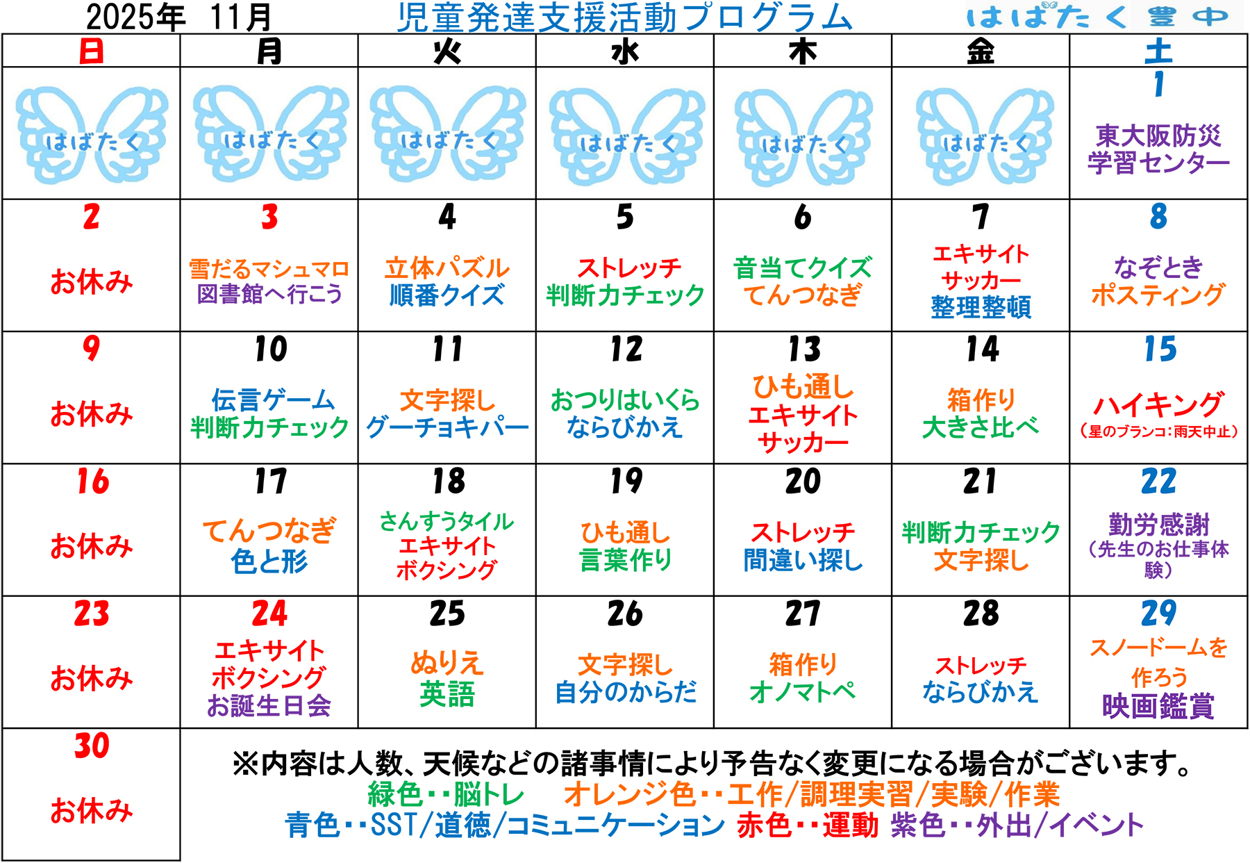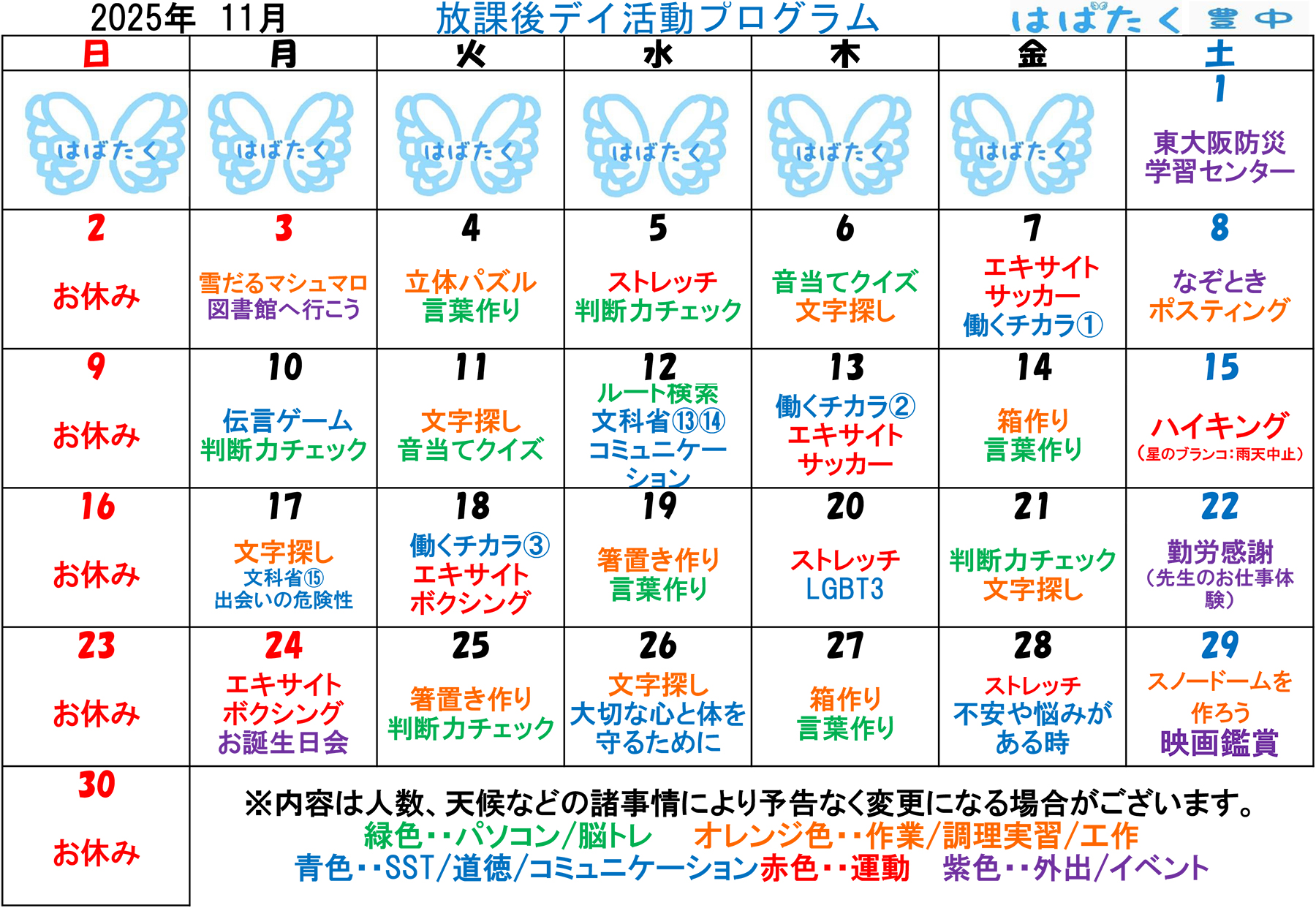 児童発達支援 就労準備型放課後等デイサービスはばたく 豊中 TEL 06-6155-4118